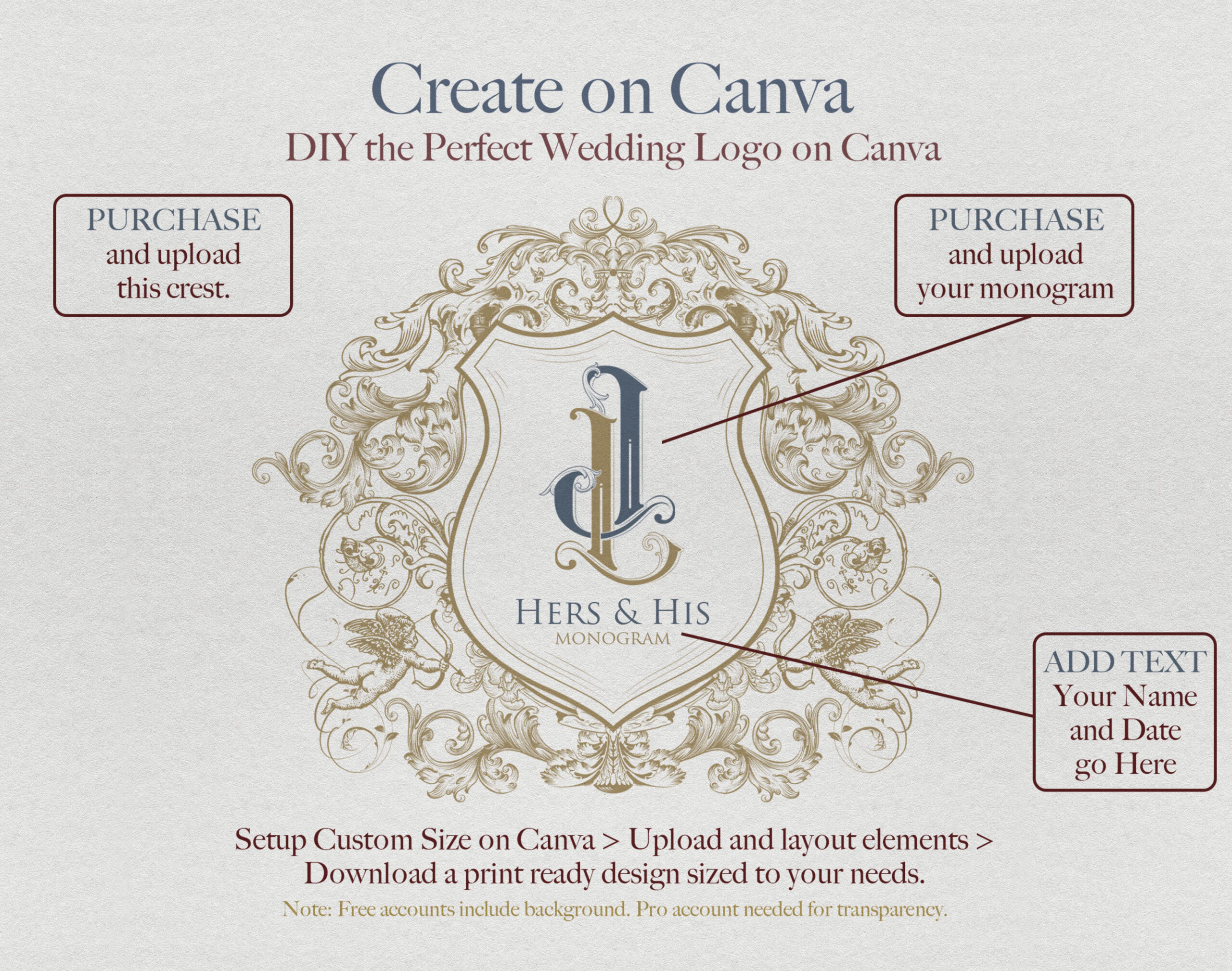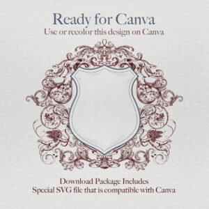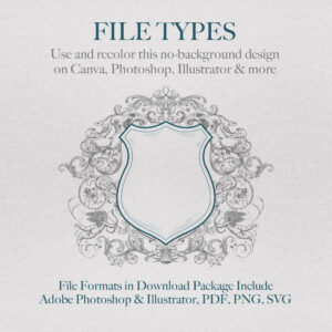 Purchase this crest and a monogram, download the files, then use our editor. Just upload the designs to combine the elements to create your wedding logo, or ’emblem’.